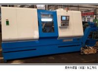 本机床用于汽车差速器壳体内腔平面及球面的加工。机床为卧式双面布置,左端为DSS精镗头和液压滑台组成,右端为DSS精镗头(从动轴,无动力)和液压及液压滑台组成。中间为夹具,夹具安装在专用数控移动工作台上,用于锪面进给。后方为双位送刀机械手,上件后送刀机械手送粗加工刀进去,动力头顶紧刀具机械手退回,数控工作台左右工进,完成粗锪面工序。刀具回位后,机械手将粗锪刀取走,另一机械手送精锪刀进入工件,重复上次循环,完成精加工。一次装夹一个工件。可通过更换、调整定位夹紧元件,实现多品种的互换加工。